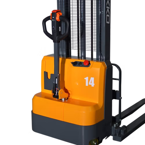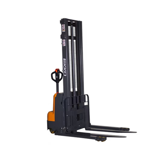 The EKKO EB14C-118 Electric Straddle Stacker is designed with the combination of the versatility of a forklift, reach truck and a walkie stacker. It is ideal for loading and unloading trucks, loading docks, stock rooms, manufacturing floors and warehousing.