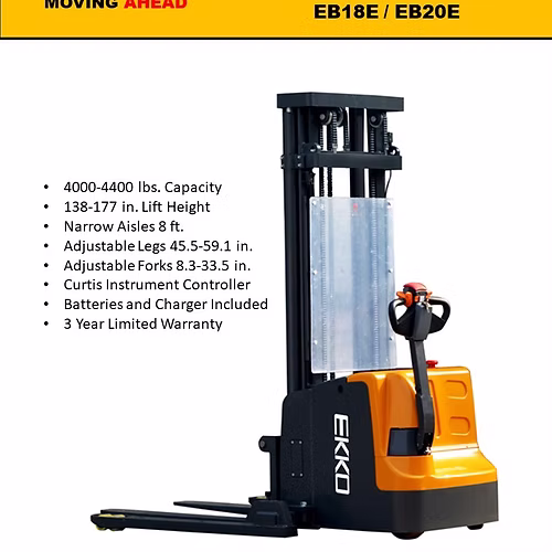 EKKO EB20E Full Powered Straddle Stacker 4400 lb Cap., 177″ Height