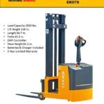 The EKKO EK07S Fully Powered Counterbalance Walkie Stacker is designed with the combination of the versatility of forklift and a walkie stacker. It is ideal for loading and unloading trucks, loading docks, stock rooms, manufacturing floors and warehousing.