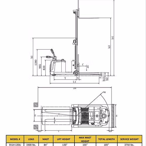 Lift height h3 (Inch) | 130 |