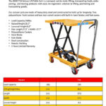 Our scissor carts are made of heavy duty steel and constructed to hold up for longevity. Two polyurethane front casters and two rear swivel casters with built-in hand brakes and foot pump.
